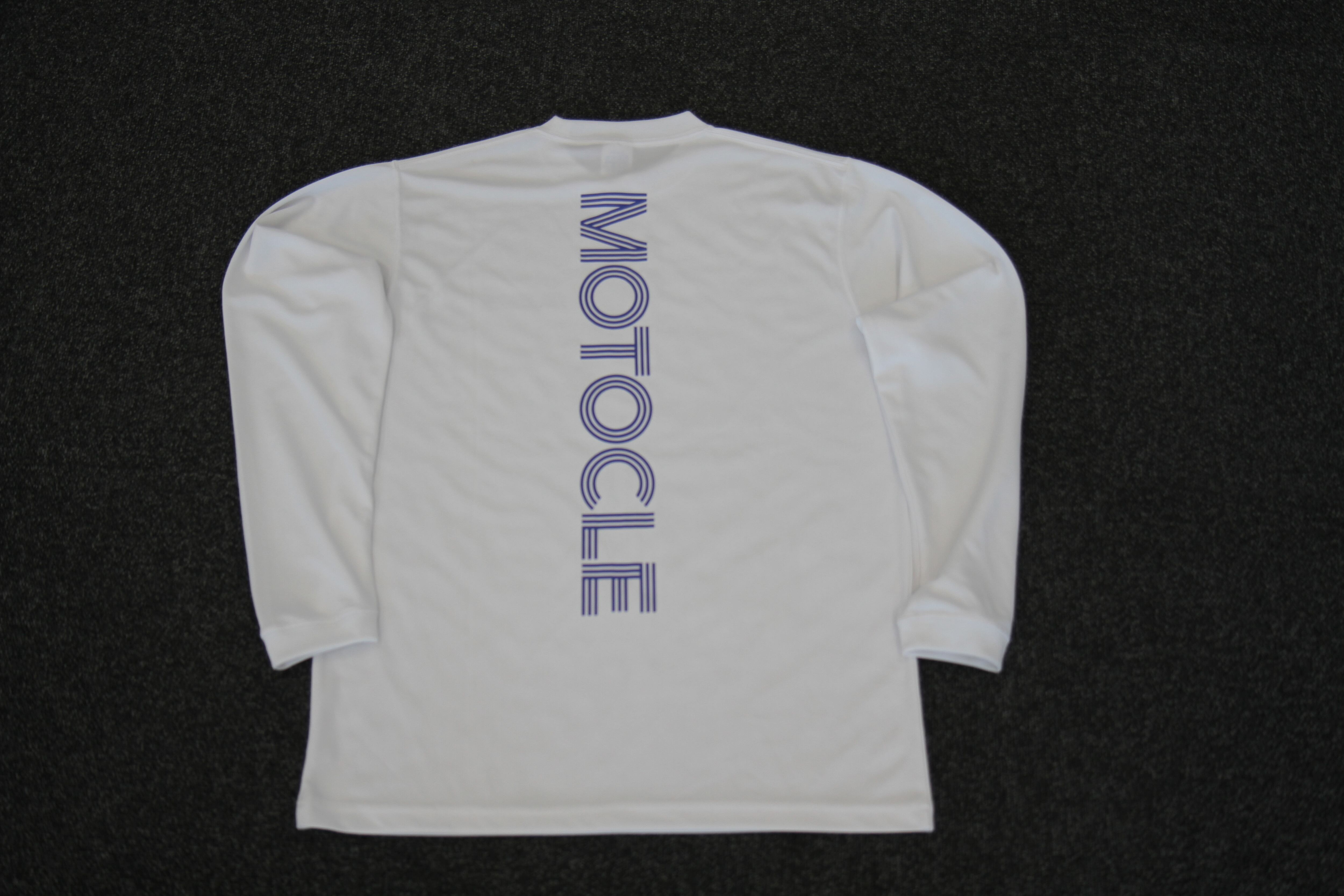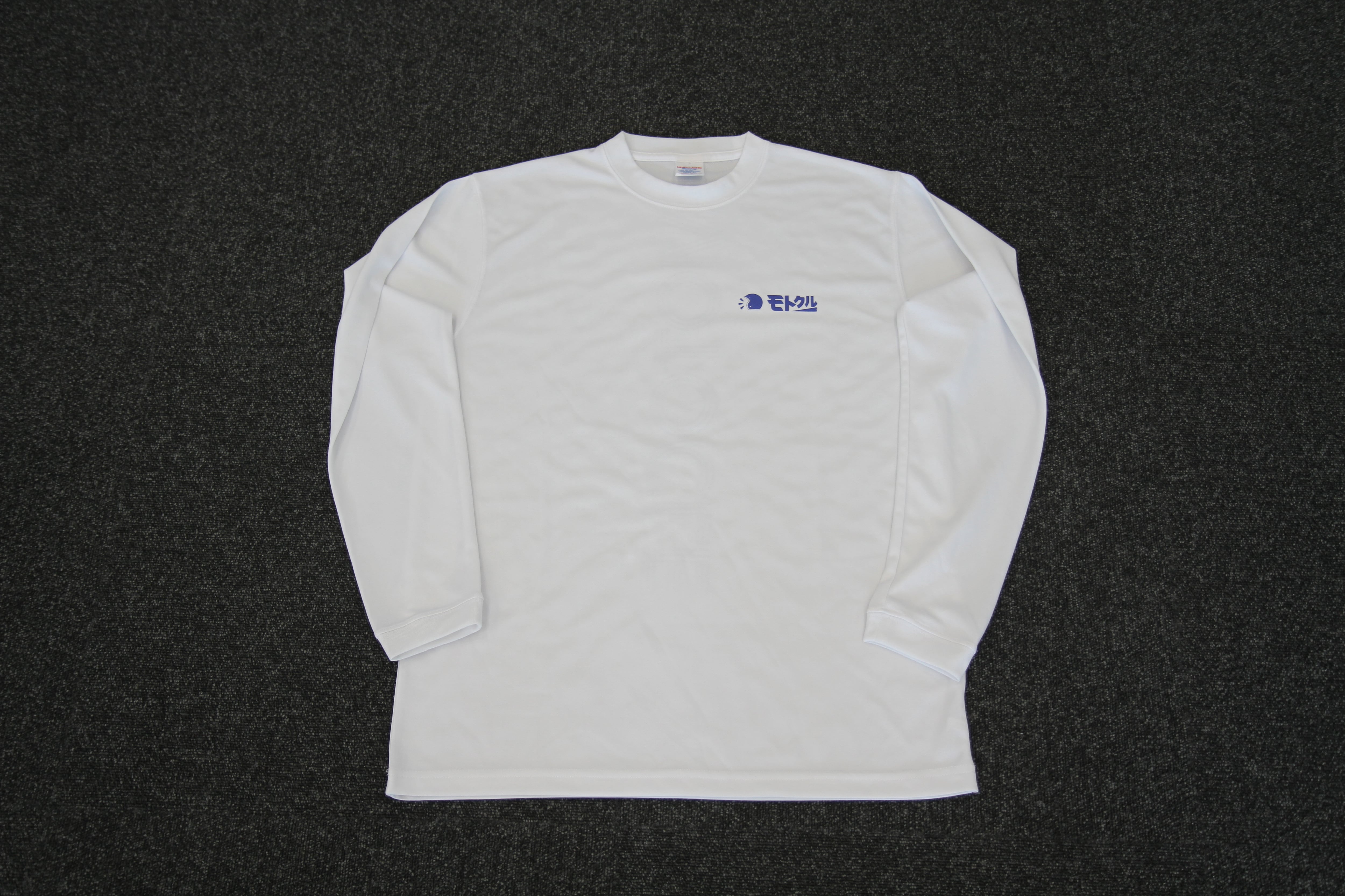 モトクルロングスリーブTシャツ(ホワイト)は、ドライ素材を使用した快適な着心地が魅力です。シンプルなデザインは、あらゆるシーンにマッチ。通気性に優れ、肌触りの良い素材が使用されているため、春先や秋口の重ね着にも最適です。これ一枚で様々なスタイルを楽しむことができ、シーズンを通じて活躍するアイテムです。